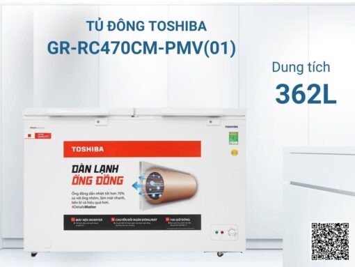 Tủ đông Toshiba GR-RC470CM-PMV(01) thiết kế 2 cửa – 1 ngăn đông, dung tích 362 lít