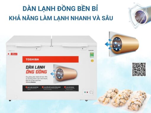 Tủ đông Toshiba GR-RC470CM-PMV(01) trang bị dàn lạnh đồng bền bỉ, chống ăn mòn, cho khả năng làm lạnh nhanh và sâu, nhiệt độ có thể xuống mức -24ºC, thoải mái bảo quản kem, thịt, hải sản và các thực phẩm đông lạnh khác. Cùng với công nghệ làm lạnh tiên tiến, cung cấp luồng khí lạnh đều khắp đến các ngóc ngách trong tủ giúp thực phẩm bên trong được bảo quản tốt và lâu, đảm bảo độ tươi ngon trong thời gian dài.