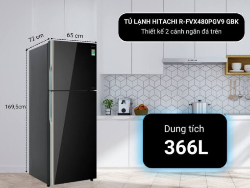 Tủ lạnh Hitachi R-FVX480PGV9 GBK sở hữu dung tích 366 lít, cung cấp khả năng sắp xếp và bảo quản thực phẩm khá lớn, phù hợp với gia đình 3-4 người.