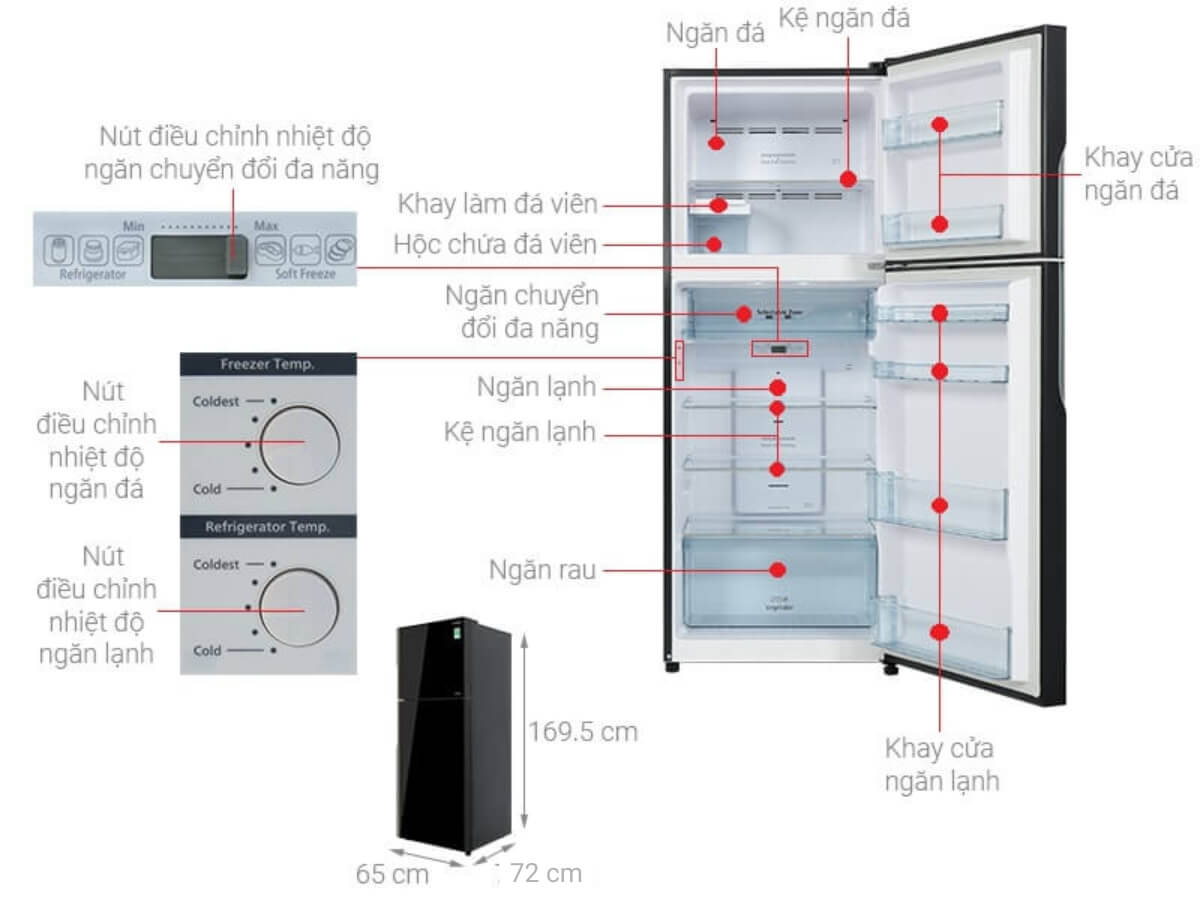 • Đèn LED chiếu sáng: Cung cấp ánh sáng giúp người dùng dễ dàng quan sát khi cho thực phẩm vào hoặc lấy thực phẩm ra.