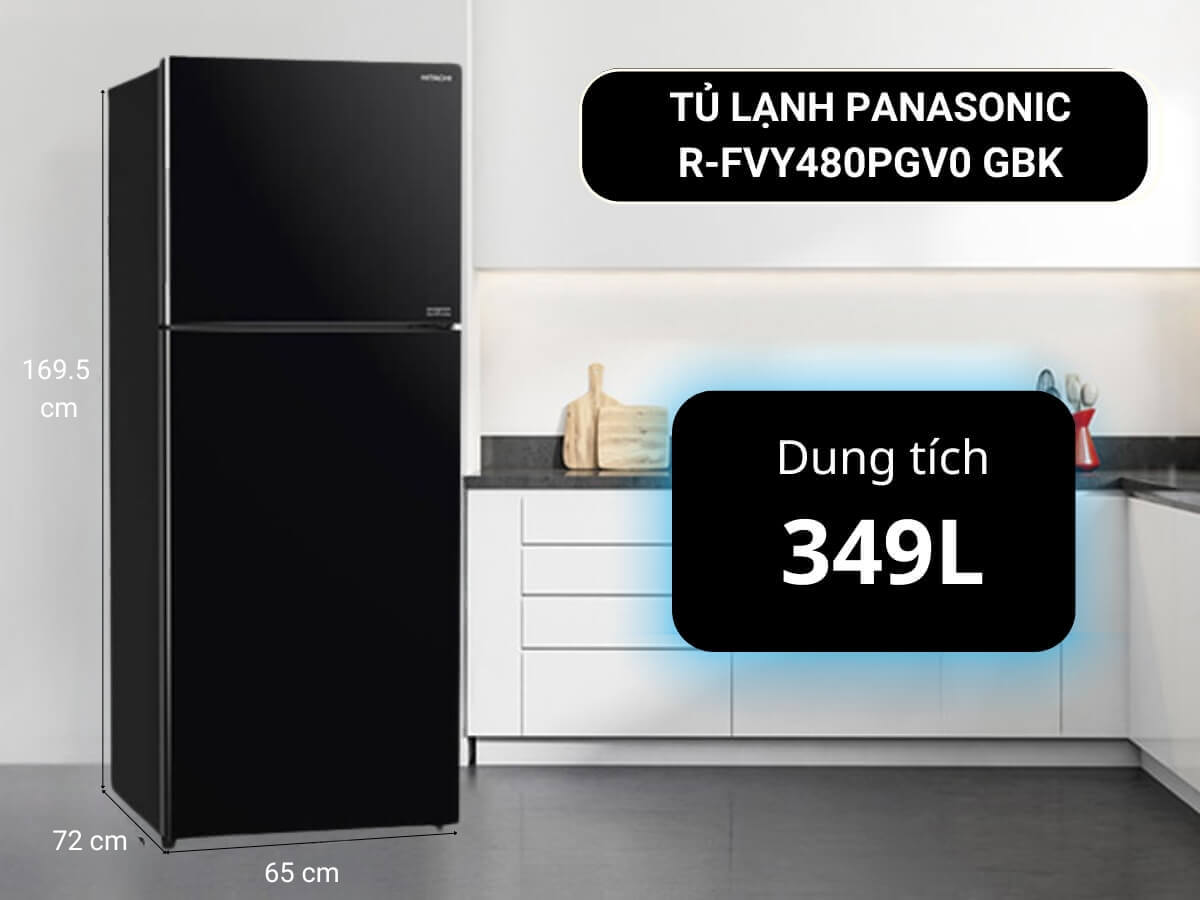 Tủ lạnh Hitachi R-FVY480PGV0 GBK sở hữu dung tích lớn 349 lít, cung cấp khả năng sắp xếp và bảo quản thực phẩm lớn, phù hợp với gia đình 3-5 người.