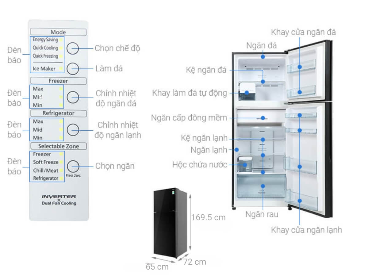 • Không đóng tuyết: Giúp tiết kiệm thời gian cho việc rã đông thực phẩm, đồng thời dễ vệ sinh, lau chùi tủ lạnh.