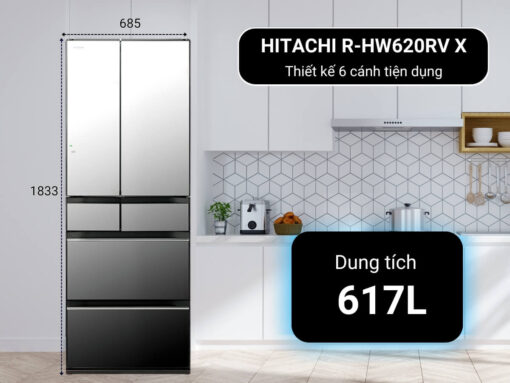 Tủ lạnh Hitachi R-HW620RV X thiết kế 6 cánh tiện dụng, sang trọng