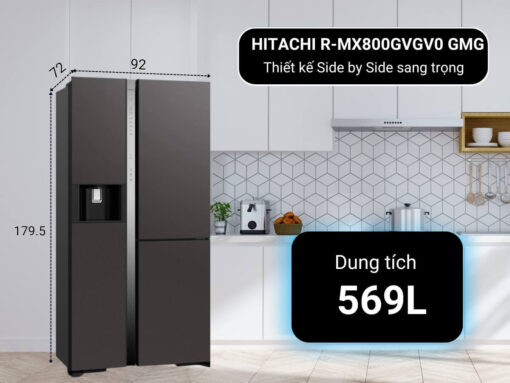 Tủ lạnh Hitachi R-MX800GVGV0 GMG thiết kế Side by Side 3 cánh sang trọng