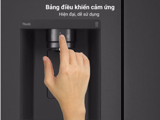 Bên cạnh đó, tủ còn được trang bị thêm tiện ích lấy đá và lấy nước mát trực tiếp bên ngoài cửa tủ, tăng thêm trải nghiệm tiện lợi cho người dùng. Chỉ cần chạm vào vòi nước để chọn lấy nước – lấy đá viên hoặc lấy đá xay là có thể lấy ngay nước mát và loại đá mong muốn mà không cần mở cửa tủ. Điều này không chỉ tiện lợi mà còn giúp tiết kiệm điện năng hiệu quả, nhờ việc hạn chế mở cửa tủ, rất hữu ích nhất là trong mùa hè khi nhu cầu sử dụng nước mát cao.