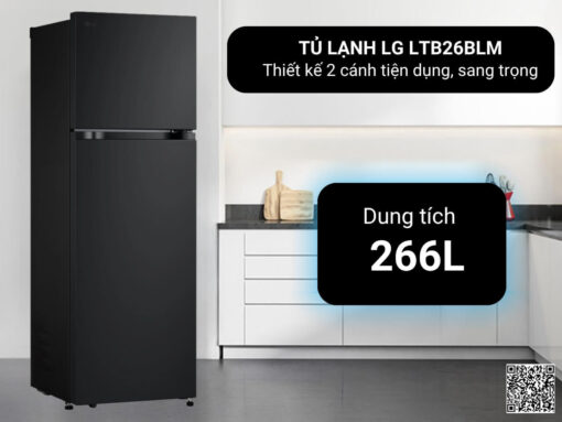 Tủ lạnh LG LTB26BLM sở hữu dung tích 266 lít, phù hợp với gia đình có 2-3 thành viên