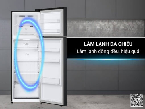 Tủ lạnh LG LTB26BLM trang bị hệ thống làm lạnh đa chiều Multi Air Flow, phân phối luồng không khí lạnh đồng đều khắp khoang tủ. Hệ thống này cung cấp khả năng làm lạnh đều, ổn định, giúp giữ thực phẩm tươi ngon hơn dưới luồng khí lạnh nhẹ nhàng.