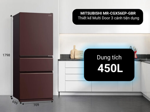 Tủ lạnh Mitsubishi MR-CGX56EP-GBR thiết kế Multi Door 3 cánh tiện dụng, sang trọng