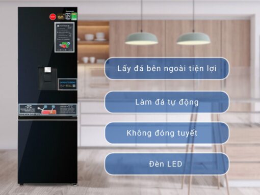 Tủ lạnh Panasonic BV361WGKV thuộc dòng tủ 2 cánh quen thuộc với ngăn đá dưới tiện dụng. Thiết kế của tủ ấn tượng bởi đường nét tối giản nhưng không kém phần hiện đại và sang trọng. Với cửa tủ chất liệu kính cường lực màu đen lịch lãm, bề mặt nhẵn bóng tạo điểm nhấn tinh tế cùng khả năng lau chùi, vệ sinh dễ dàng, duy trì vẻ bóng đẹp lâu bền theo thời gian.
