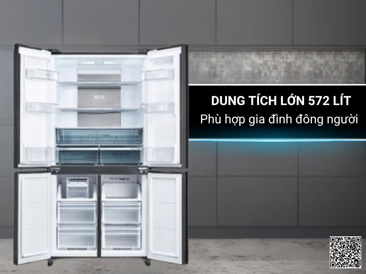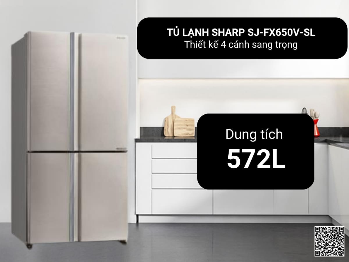 Tủ lạnh Sharp SJ-FX650V-SL 572L thiết kế 4 cánh sang trọng