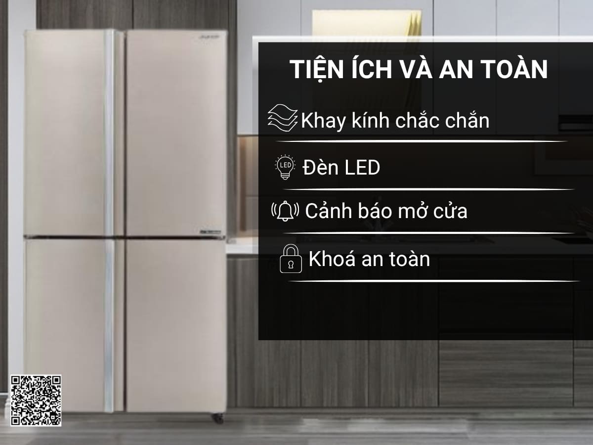 - Khoá an toàn: Khóa bảng điều khiển tủ để trẻ em không thể tự ý thay đổi các cài đặt trên tủ lạnh, tránh ảnh hưởng đến quá trình bảo quản thực phẩm.