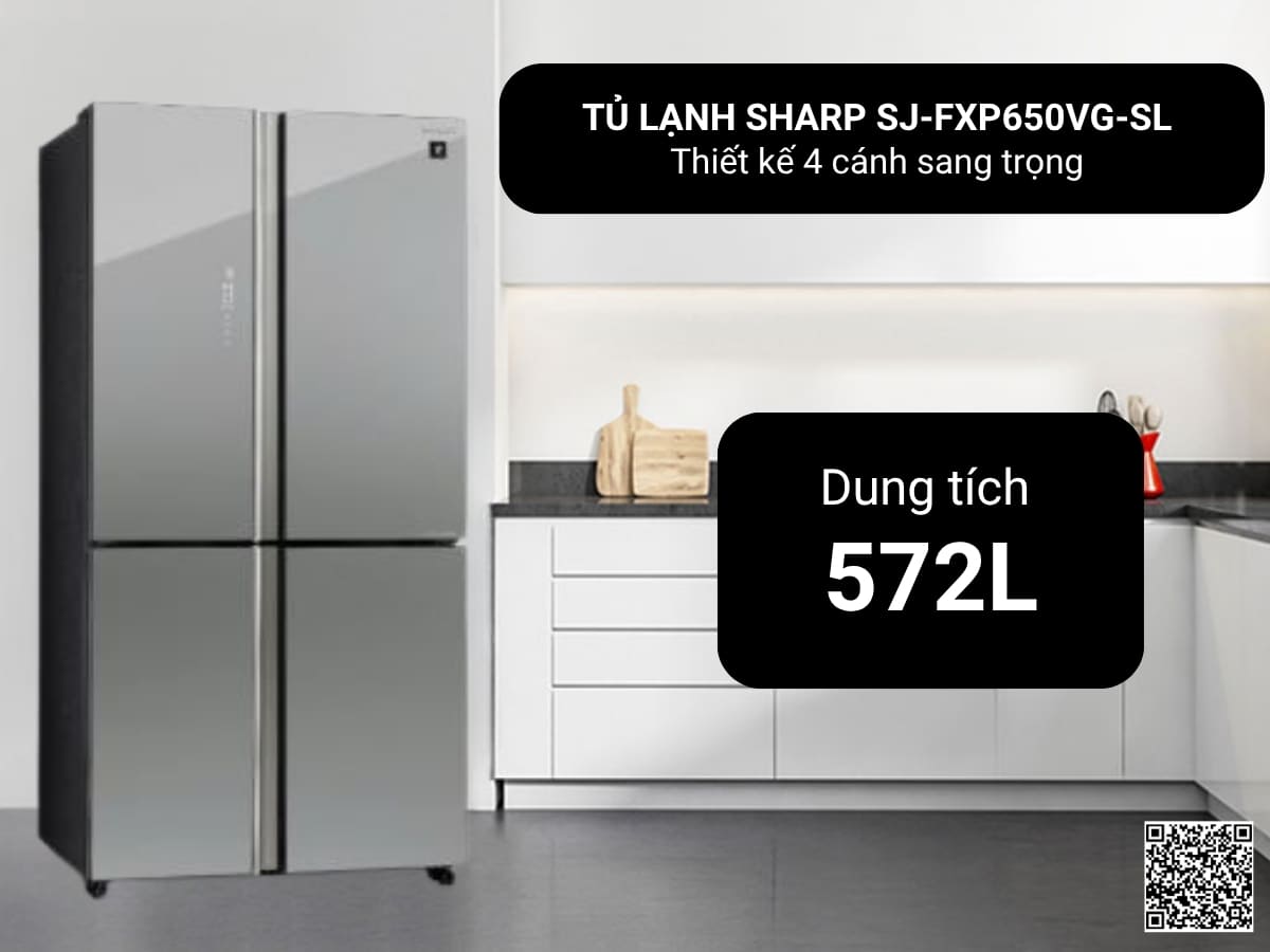 Tủ lạnh Sharp SJ-FXP650VG-SL 572L thiết kế 4 cánh sang trọng