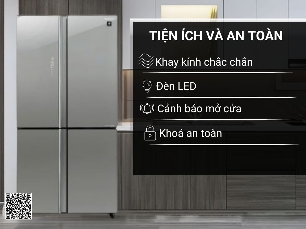 - Khoá an toàn: Khóa bảng điều khiển tủ để trẻ em không thể tự ý thay đổi các cài đặt trên tủ lạnh, tránh ảnh hưởng đến quá trình bảo quản thực phẩm.