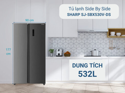 Tủ lạnh Sharp SJ-SBX530V-DS sở hữu dung tích lớn đến 532 lít, cung cấp khả năng sắp xếp và bảo quản thực phẩm không giới hạn, phù hợp với gia đình có 4-5 thành viên và nhu cầu cất trữ thực phẩm nhiều, trong thời gian lâu mà không cần e ngại về sức chứa của tủ.