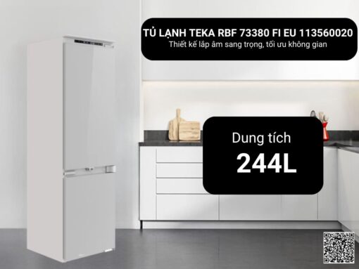 Tủ lạnh Teka RBF 73380 FI EU 113560020 có tổng dung tích 244 lít, được phân chia thông minh để đáp ứng mọi nhu cầu lưu trữ, bao gồm ngăn lạnh 151 lít, ngăn đông 67 lít và ngăn thực phẩm tươi sống 26 lít.