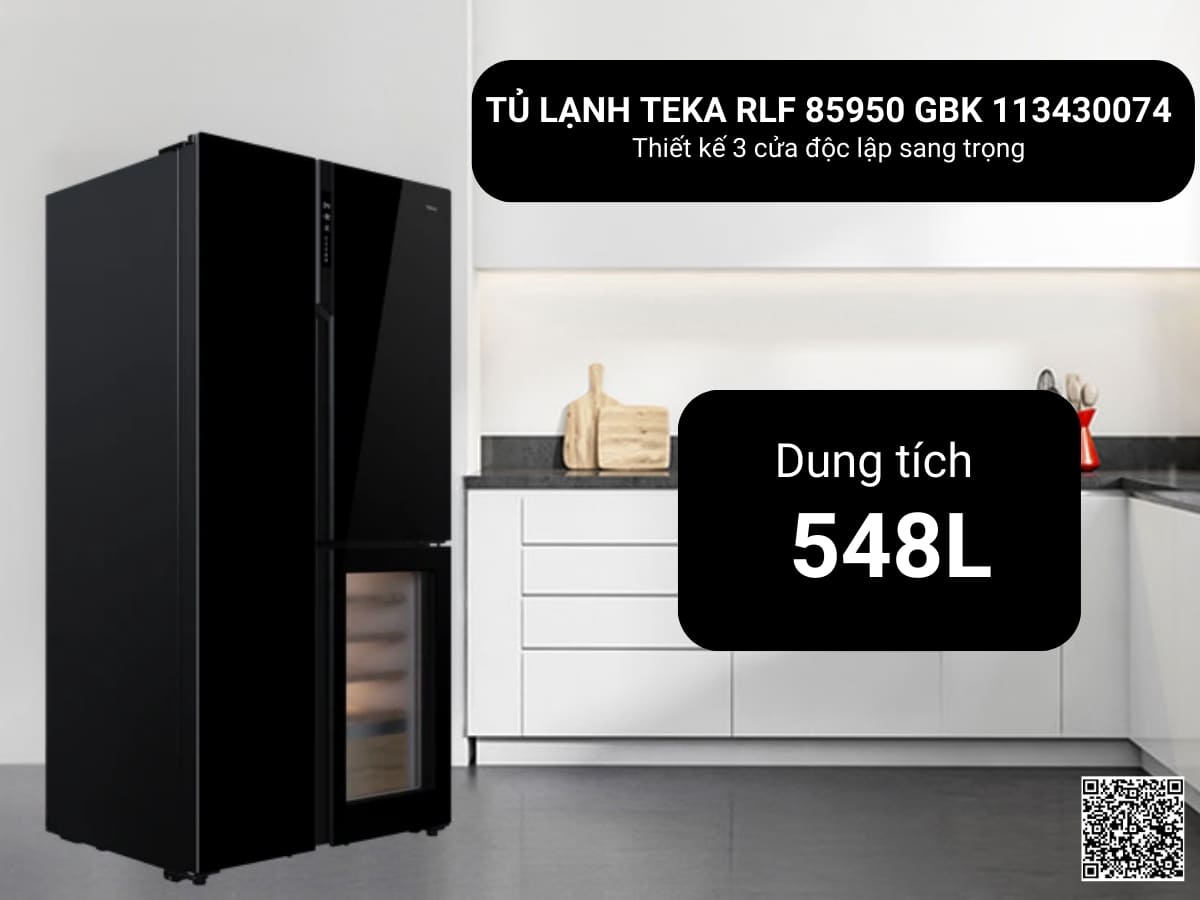 Tủ lạnh Teka RLF 85950 GBK 113430074 có tổng dung tích 548 lít, được phân chia thông minh để đáp ứng mọi nhu cầu lưu trữ, bao gồm ngăn lạnh, ngăn đông và một ngăn trữ rượu vang chuyên dụng.