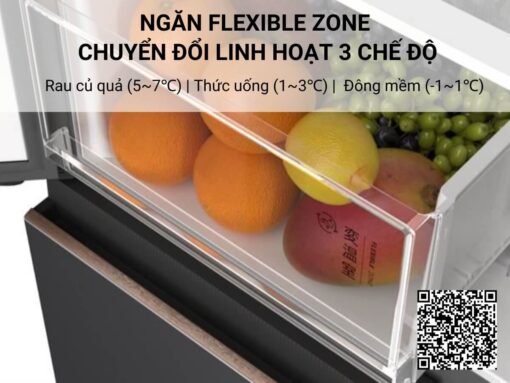 Công nghệ Inverter giúp tiết kiệm điện tối ưu, ngăn chuyển đổi Flexible Zone có thể cấp đông mềm thịt cá mà không cần rã đông