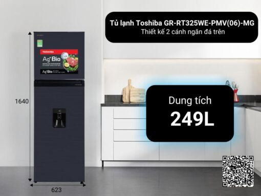 Tủ lạnh Toshiba GR-RT325WE-PMV(06)-MG được trang bị dung tích 249 lít, đáp ứng tốt nhu cầu bảo quản thực phẩm cho các gia đình từ 2-3 thành viên. Cụ thể: