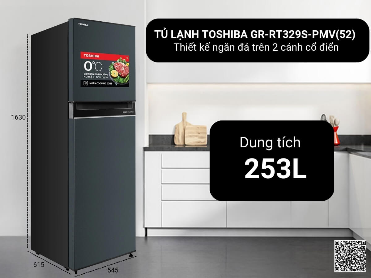 Tủ lạnh Toshiba GR-RT329S-PMV(52) có tổng dung tích 278 lít, trong đó dung tích sử dụng là 253 lít, đáp ứng tốt nhu cầu bảo quản thực phẩm cho các gia đình nhỏ từ 2 – 3 thành viên. Cụ thể:
