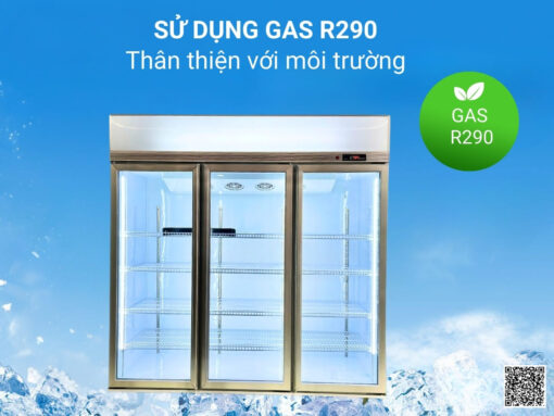 Tủ mát 3 cửa Lightcool LS-1200F sử dụng loại Gas R290 an toàn cao với người dùng, khả năng làm lạnh lâu và êm ái, đồng thời tiết kiệm điện năng khi sử dụng, thân thiện với môi trường.