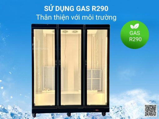 Tủ mát 3 cửa Lightcool LS-1670 sử dụng loại Gas R290 an toàn cao với người dùng, khả năng làm lạnh lâu và êm ái, đồng thời tiết kiệm điện năng khi sử dụng, thân thiện với môi trường.