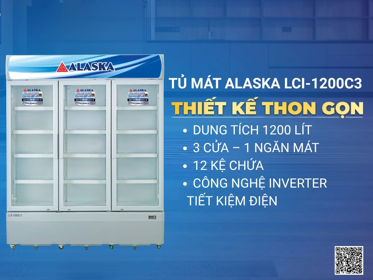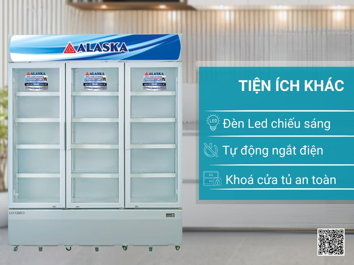 Tủ mát Alaska LCI-1200C3 còn trang bị công nghệ Inverter, giúp duy trì nhiệt độ ổn định và giúp tủ hoạt động êm ái, tiết kiệm điện năng đáng kể.