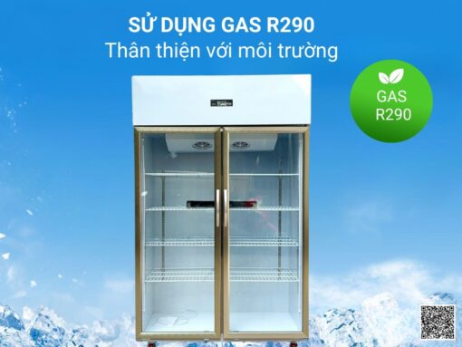 Tủ mát inox 2 cửa Lightcool LS-1200F sử dụng loại Gas R290 an toàn cao với người dùng, khả năng làm lạnh lâu và êm ái, đồng thời tiết kiệm điện năng khi sử dụng, thân thiện với môi trường.