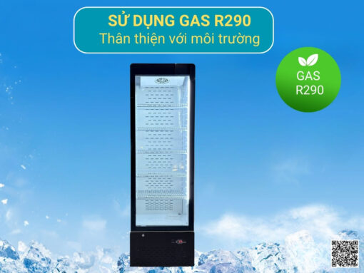 Tủ mát Lightcool LC-328F sử dụng loại Gas R290 an toàn cao với người dùng, khả năng làm lạnh lâu và êm ái, đồng thời tiết kiệm điện năng khi sử dụng, thân thiện với môi trường.