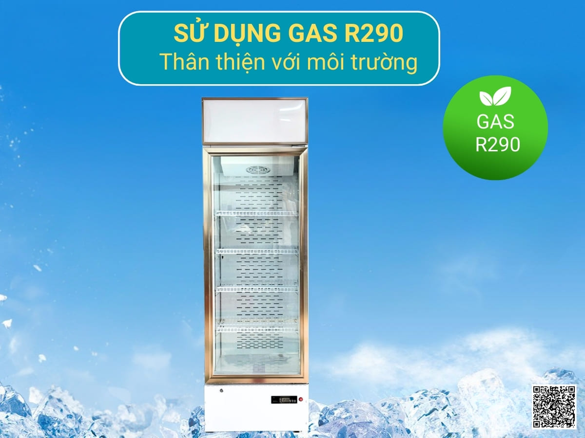 Tủ mát Lightcool LC-328F sử dụng loại Gas R290 an toàn cao với người dùng, khả năng làm lạnh lâu và êm ái, đồng thời tiết kiệm điện năng khi sử dụng, thân thiện với môi trường.