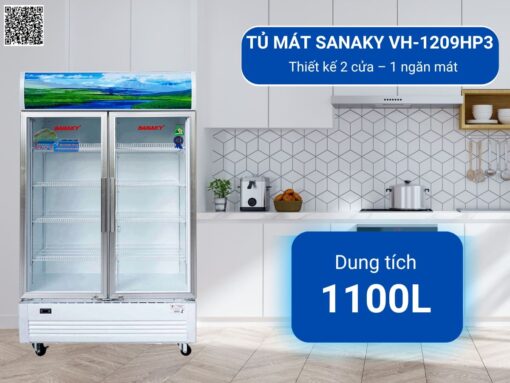 Tủ mát Sanaky VH-1209HP3 được thiết kế dạng tủ đứng 2 cửa – 1 ngăn mát, dung tích 1100 lít, phù hợp dùng cho các nhà hàng, quán ăn, cửa hàng, siêu thị… có nhu cầu bảo quản và trưng bày thực phẩm lớn.