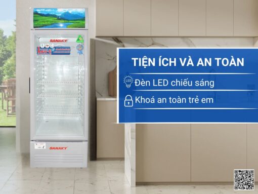 Thiết kế dạng tủ đứng 2 cửa – 1 ngăn mát với dung tích 240 lít, phù hợp dùng cho quán ăn, tạp hóa, cửa hàng tiện lợi nhỏ, nhu cầu bảo quản và trưng bày thực phẩm ít. Tủ được trang bị dàn lạnh nhôm giúp làm lạnh nhanh và hiệu quả. 4 kệ chứa có thể thay đổi vị trí linh hoạt, dễ dàng sắp xếp và trưng bày thực phẩm. Cửa kính 2 lớp Low-E chống đọng sương hiệu quả, dễ dàng quan sát bên trong.[caption id="attachment_105389" align="alignnone" width="1200"] Tủ mát Sanaky VH-308WL thiết kế 2 cửa – 1 ngăn mát, dung tích 240 lít[/caption]Tủ mát Sanaky VH-308WL được thiết kế dạng tủ đứng 2 cửa - 1 ngăn mát, dung tích 240 lít, phù hợp dùng cho quán ăn, tạp hóa, cửa hàng tiện lợi nhỏ, với nhu cầu bảo quản và trưng bày thực phẩm ít.Bên trong tủ được trang bị 4 kệ chứa có thể thay đổi vị trí linh hoạt, dễ dàng sắp xếp và trưng bày thực phẩm.Thân tủ bằng thép sơn tĩnh điện màu trắng, dễ vệ sinh, lau chùi và dễ phù hợp với mọi không gian. Thiết kế tủ đứng với 4 bánh xe dễ dàng lắp đặt và di chuyển mà không chiếm nhiều diện tích.Kích thước tủ: 575R x 610S x 1745C mmCửa kính 2 lớp Low-E chống đọng sương, hệ thống sưởi kính bằng hơi nóng [caption id="attachment_105391" align="alignnone" width="1200"] Dàn lạnh nhôm, khả năng làm lạnh nhanh và đều[/caption]Tủ mát Sanaky VH-308WL trang bị dàn lạnh nhôm dẫn nhiệt tốt, cho khả năng làm lạnh nhanh và đều, nhiệt độ 0 - 10ºC phù hợp để bảo quản nhiều loại thực phẩm như nước giải khát, trái cây, rau củ... Cùng với công nghệ làm lạnh tiên tiến, cung cấp luồng khí lạnh đều khắp đến các ngóc ngách trong tủ giúp thực phẩm bên trong được bảo quản tốt và lâu, đảm bảo độ tươi ngon trong thời gian dài. Sử dụng Gas R600a thân thiện với môi trường [caption id="attachment_105393" align="alignnone" width="1200"] Tiện ích khác[/caption]Hệ thống đèn LED chiếu sáng bên trong tủ, dễ dàng quan sát khi cho thực phẩm vào và lấy ra, nhất là khi thiếu sáng Khoá cửa tủ an toàn giúp kiểm soát tốt quá trình đóng mở, hạn chế thất thoát hơi lạnh, ngăn trẻ em tự ý đóng mở tủ.Mua tủ mát Sanaky VH-308WL tại Đà Nẵng ở đâu uy tín giá tốt? Hiện tại, sản phẩm tủ mát Sanaky VH-308WL đang được bán tại website cũng như Showroom của Bếp Hưng Phú với giá cực kỳ ưu đãi với những chính sách bảo hành từ lỗi của nhà sản xuất. Quý khách hãy gọi trực tiếp vào đường dây nóng để nhận được những tư vấn chi tiết hoặc đặt hàng trên website, Bếp Hưng Phú sẽ gọi xác nhận đơn hàng với quý khách.[caption id="attachment_21117" align="alignnone" width="1200"]