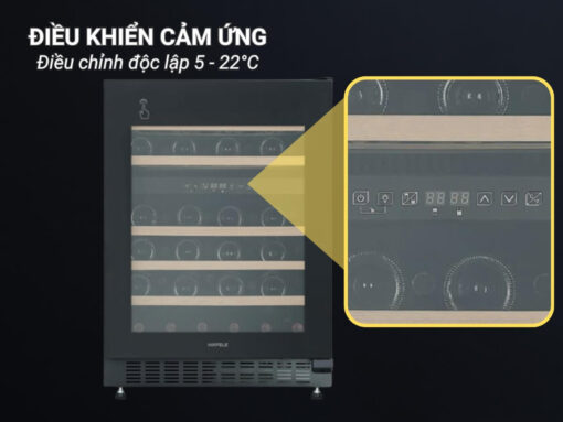 Tủ rượu Hafele HW-C129FB (533.17.011) dung tích 129 lít, 5 ngăn chứa bằng gỗ với sức chứa tối đa 46 chai rượu vang. Thiết kế tủ có thể lắp độc lập hoặc lắp âm linh hoạt, dễ dàng phù hợp với nhiều không gian. Hệ thống làm lạnh bằng máy nén vận hành ổn định, bảo quản được hương vị rượu một cách tốt nhất. Bảng điều khiển cảm ứng và màn hình LED hiện đại, dễ sử dụng, có thể điều chỉnh nhiệt độ độc lập cho 2 khu vực trên và dưới, dải nhiệt 5 – 22°C phù hợp để bảo quản nhiều loại rượu khác nhau.