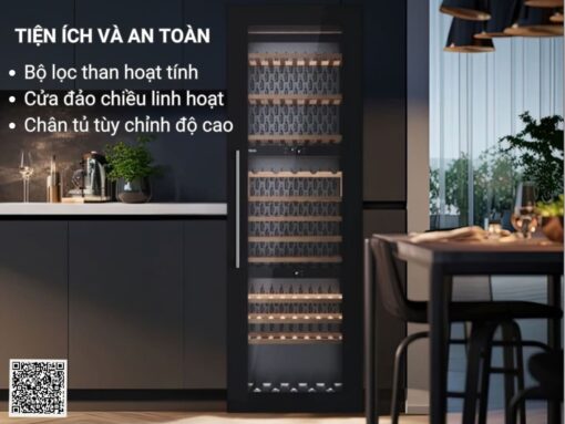 Tủ rượu Teka RVI 30097 GBK có sức chứa lớn lên đến 93 chai là giải pháp lưu trữ rượu chuyên nghiệp hoàn hảo cho các nhà hàng sang trọng, quầy bar đẳng cấp, hoặc các hầm rượu mini tại gia. Với thiết kế lắp âm hoàn toàn, tủ dễ dàng tích hợp liền mạch vào mọi không gian nội thất hiện đại. Sản phẩm được trang bị động cơ Inverter tiết kiệm điện, công nghệ làm lạnh Surroundair và SmartControl giúp duy trì nhiệt độ ổn định, bảo quản hương vị rượu một cách tốt nhất. Bảng điều khiển cảm ứng hiện đại cho phép điều chỉnh 3 vùng nhiệt độ riêng biệt, phù hợp để bảo quản cùng lúc nhiều loại rượu khác nhau.” Với thiết kế lắp âm hoàn toàn, tủ dễ dàng tích hợp liền mạch vào mọi không gian nội thất hiện đại. Sản phẩm được trang bị động cơ Inverter tiết kiệm điện, công nghệ làm lạnh Surroundair và SmartControl giúp duy trì nhiệt độ ổn định, bảo quản hương vị rượu một cách tốt nhất. Bảng điều khiển cảm ứng hiện đại cho phép điều chỉnh 3 vùng nhiệt độ riêng biệt, phù hợp để bảo quản cùng lúc nhiều loại rượu khác nhau.