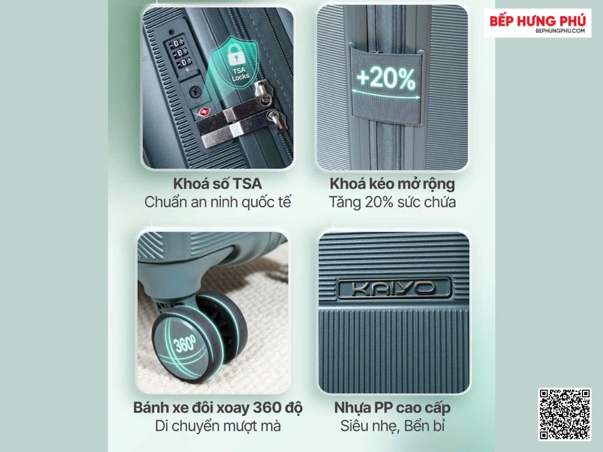 - An toàn tuyệt đối: Tích hợp khóa số TSA tiêu chuẩn an ninh Hoa Kỳ, giúp bạn hoàn toàn yên tâm khi ký gửi hành lý.