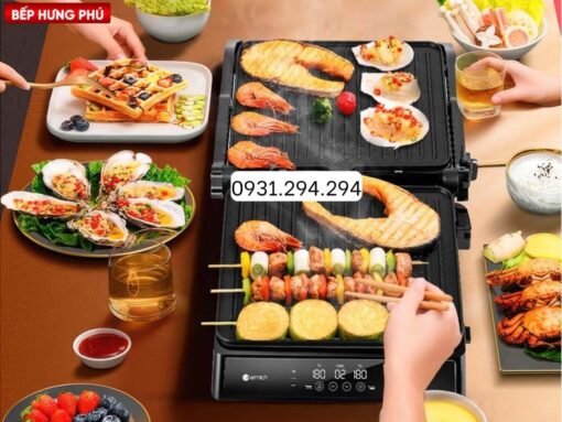 – Thiết kế vỉ đôi có thể gấp gọn 0° thuận tiện mang đi và cất giữ, hoặc mở rộng 180° gấp đôi bề mặt nướng để nướng được nhiều thực phẩm hơn.
