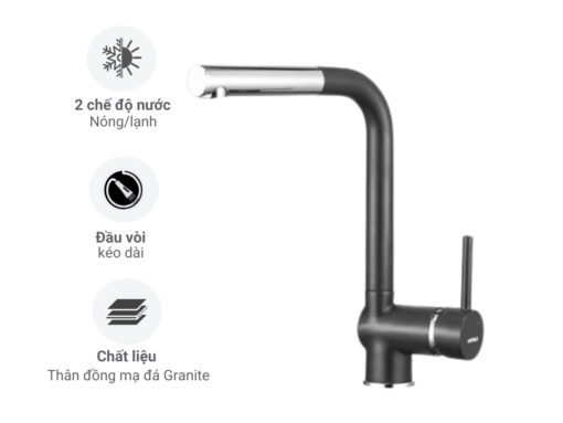 Vòi bếp Häfele HT19-GH1P278 (570.51.380) là một trong những mẫu vòi rửa chén nổi bật của Hafele, sở hữu thiết kế đẹp với bề mặt mạ đá Granite màu đen sang trọng, kết hợp với phần đầu vòi mạ chrome sáng bóng, tạo điểm nhấn tinh tế cho không gian nấu nướng của bạn. Vòi cung cấp 2 đường nước nóng lạnh cùng tính năng rút dây đem đến sự tiện lợi tối đa cho người dùng.