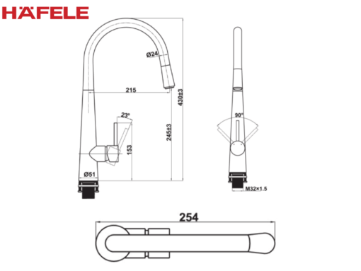 Kích thước Vòi Bếp Häfele HT21-CH1P245 (577.55.220):