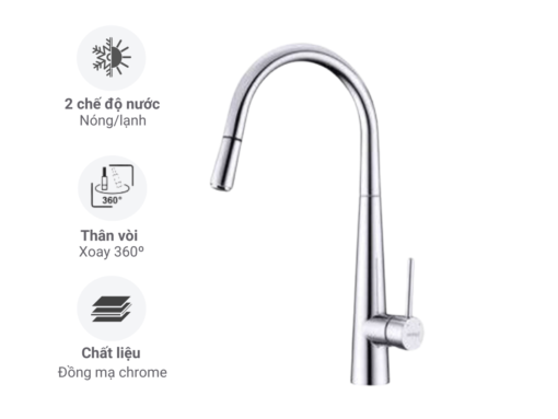 Được thiết kế là vòi dạng cổ rút, nhằm mục đích kéo dài để vệ sinh chậu rửa dễ dàng hơn. Vòi rửa bát HT21-CH1P245 còn có thể xoay 360 độ linh hoạt, điều chỉnh hướng theo nhu cầu người dùng.