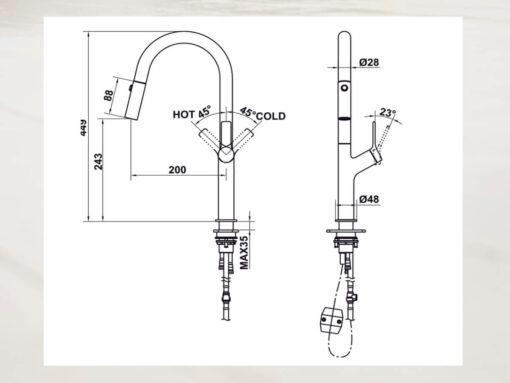 Vòi Hafele HT25-SH1F449 (570.85.043) sở hữu thiết kế đẹp với bề mặt mạ PVD màu Chrome bóng sang trọng, tạo điểm nhấn tinh tế cho không gian nấu nướng của bạn. Vòi cung cấp 2 đường nước nóng lạnh cùng 2 chế độ chia tia nước: phun mưa và tạo bọt đáp ứng nhu cầu sử dụng đa dạng của gia đình. Ngoài ra là thiết kế rút dây với đầu vòi có thể kéo dài và thân vòi xoay 360° linh hoạt, đem đến sự tiện lợi tối đa cho người dùng.