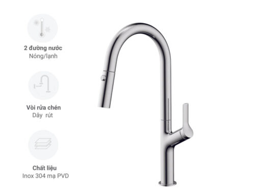 Vòi rửa dây rút có khả năng cung cấp nguồn nước nóng lạnh cơ bản. Đặc biệt, loại vòi này có thiết kế đặc biệt với phần đầu vòi có thể kéo dài, để vừa có thể xả nước dùng cho chậu rửa, vừa có thể kéo dài vòi giúp bạn linh hoạt hơn khi rửa các loại rau củ, chén bát hay cần làm sạch các vật ở xa chậu rửa.