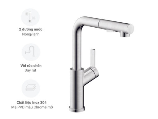 Vòi rửa dây rút có khả năng cung cấp nguồn nước nóng lạnh cơ bản. Đặc biệt, loại vòi này có thiết kế đặc biệt với phần đầu vòi có thể kéo dài, để vừa có thể xả nước dùng cho chậu rửa, vừa có thể kéo dài vòi giúp bạn linh hoạt hơn khi rửa các loại rau củ, chén bát hay cần làm sạch các vật ở xa chậu rửa.