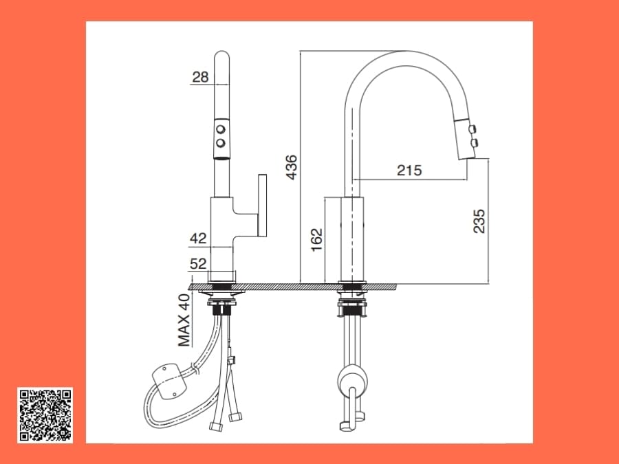 - Đầu vòi rút dây (Pull-out) tiện lợi, dễ dàng vệ sinh chậu rửa.