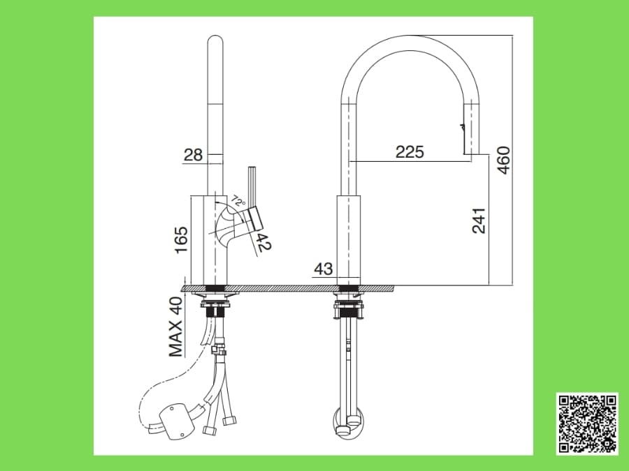 - Chiều cao từ mặt chậu đến đầu vòi: 241mm