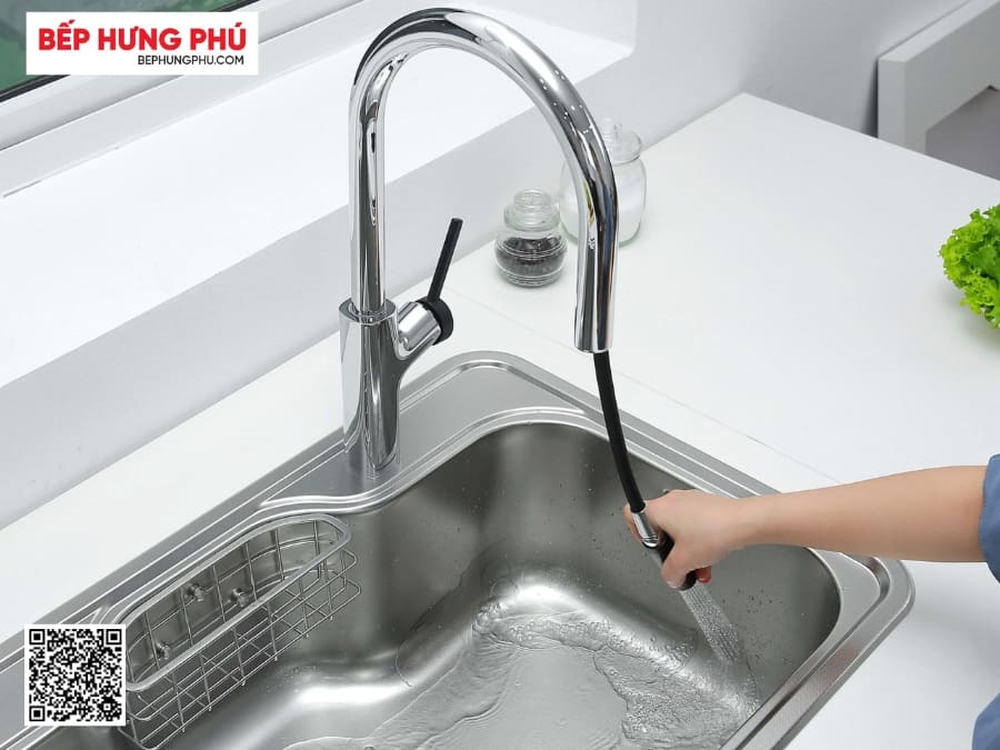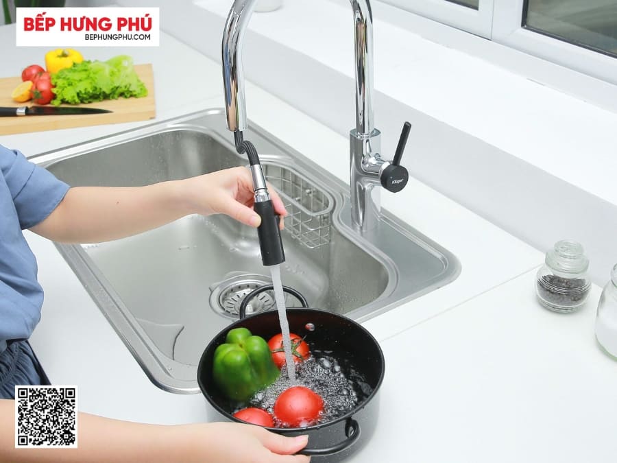 - Đầu vòi rút dây (Pull-out) tiện lợi, dễ dàng vệ sinh chậu rửa.
