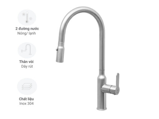 Vòi rửa dây rút có khả năng cung cấp nguồn nước nóng lạnh cơ bản. Đặc biệt, loại vòi này có thiết kế đặc biệt với phần đầu vòi có thể kéo dài, để vừa có thể xả nước dùng cho chậu rửa, vừa có thể kéo dài vòi giúp bạn linh hoạt hơn khi rửa các loại rau củ, chén bát hay cần làm sạch các vật ở xa chậu rửa.