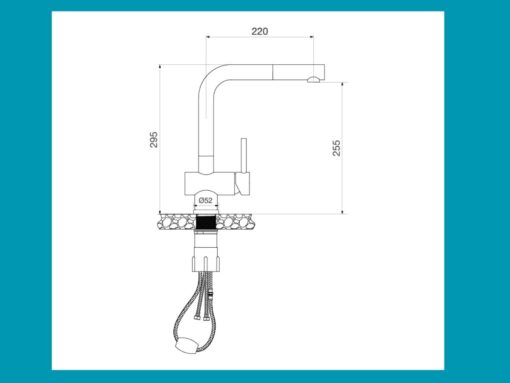• Đầu vòi có thể kéo dài mở rộng phạm vi làm việc