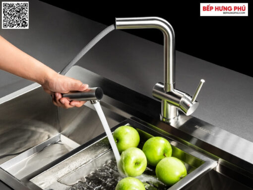 Sở hữu thiết kế đẹp với bề mặt mạ PVD màu Titan sang trọng, tạo điểm nhấn tinh tế cho không gian nấu nướng của bạn. Vòi cung cấp 2 đường nước nóng lạnh cùng 2 chế độ chia tia nước: phun mưa và tạo bọt đáp ứng nhu cầu sử dụng đa dạng của gia đình. Ngoài ra là thiết kế rút dây với đầu vòi có thể kéo dài và thân vòi xoay 360° linh hoạt, đem đến sự tiện lợi tối đa cho người dùng. Đặc điểm nổi bật của Vòi Hafele HT25-SH1F449 (570.85.046) [caption id="attachment_97000" align="alignnone" width="1200"] Kích thước vòi Hafele HT25-SH1F449 (570.85.046)[/caption]3. Kích thướcChiều cao vòi 449 mm Chiều cao từ mặt chậu đến đầu vòi 243 mm4. Chức năng tiện ích:Vòi cung cấp 2 đường nước nóng - lạnh Đầu vòi có thể kéo dài mở rộng phạm vi làm việc Thân vòi xoay 360° linh hoạt 2 chế độ tia nước: phun mưa + tạo bọtCác loại vòi rửa chén được ưa chuộng nhất hiện nay Dòng sản phẩm Vòi rửa đồng có phần lõi bằng đồng bền chắc và lớp mạ bên ngoài tinh xảo, tăng thêm đẳng cấp gian bếp[/caption]Vòi rửa inoxLoại vòi rửa được làm từ chất liệu inox 201 hoặc inox 304 có độ bền cao, khả năng chịu nhiệt tốt, không bị gỉ sét hay ăn mòn. Đây cũng là những chất liệu thân thiện, an toàn với sức khỏe người dùng. Vòi rửa không bị gỉ sét, không sản sinh ra các chất độc hại trong quá trình sử dụng, ngay cả khi dùng với nước nóng cũng không gây ra phản ứng hoá học. Vì vậy, không chỉ dùng để rửa chén bát, dụng cụ nấu nướng, vòi rửa chén inox cũng rất an toàn để dùng làm sạch thực phẩm, nguyên liệu nấu ăn và cả dẫn nước sạch để nấu nướng.Vòi rửa inox khá đa dạng về kiểu dáng, với thiết kế sang trọng, đẹp mắt, góp phần tạo điểm nhấn cho không gian bếp của bạn. Vòi rửa inox có giá thành phải chăng nên dễ dàng phù hợp với nhiều người dùng khác nhau.[caption id="attachment_36808" align="aligncenter" width="1200"] Vòi rửa đá mang đến vẻ sang trọng, tinh tế cho gian bếp[/caption]Phân chia theo kiểu dáng thì có các loại vòi sau: Vòi thân cứng Hay còn được gọi là vòi ngổng cứng, đặc tính của vòi này là có phần thân cứng cố định, chỉ xả nước ở trong khu vực hẹp ngay dưới chậu rửa. Tuy nhiên có ưu điểm độ bền cao và được sử dụng rất phổ biến.[caption id="attachment_36810" align="aligncenter" width="1200"] Vòi thân mềm tạo sự linh hoạt tối đa cho quá trình rửa dọn[/caption] Vòi rửa dây rút Vòi rửa dây rút có khả năng cung cấp nguồn nước nóng lạnh cơ bản. Đặc biệt, loại vòi này có thiết kế đặc biệt với phần đầu vòi có thể kéo dài, để vừa có thể xả nước dùng cho chậu rửa, vừa có thể kéo dài vòi giúp bạn linh hoạt hơn khi rửa các loại rau củ, chén bát hay cần làm sạch các vật ở xa chậu rửa.[caption id="attachment_36812" align="aligncenter" width="1200"] Vòi rửa 1 đường nước có chức năng dẫn xả nước lạnh thông thường[/caption] Vòi rửa 2 đường nước nóng lạnh Vòi cho phép sử dụng đồng thời 2 đường nước nóng và nước lạnh, chỉ cần điều chỉnh cần gạt là có thể dùng nước nóng hoặc lạnh tùy ý. Về cơ bản, các loại vòi đồng, vòi đá hay vòi inox đều có thể tích hợp chức năng xả nước nóng lạnh để tiện lợi sử dụng.[caption id="attachment_36814" align="aligncenter" width="1200"] Vòi rửa 3 đường nước tích hợp với máy lọc nước đem đến nguồn nước sạch, an toàn để nấu ăn[/caption] Hình ảnh thực tế [caption id="attachment_96998" align="alignnone" width="1200"] Showroom Bếp Hưng Phú[/caption] Chính sách bảo hành của siêu thị Bếp Hưng PhúTất cả các sản phẩm được Bếp Hưng Phú phân phối sẽ theo theo chính sách đổi trả———————————————————-Tuyển CTV bán hàng chiết khấu cao. Liên hệ: 0931.294.294Khách hàng thợ tủ, khách hàng công trình xin vui lòng liên hệ 0905.541.291 hoặc inbox fanpage
