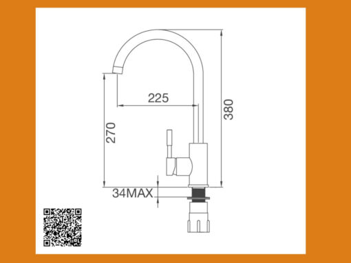- Chiều cao từ mặt chậu đến đầu vòi 270 mm