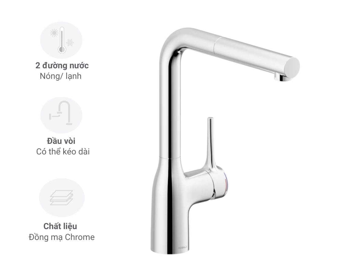 - Đầu vòi có thể kéo dài mở rộng phạm vi làm việc