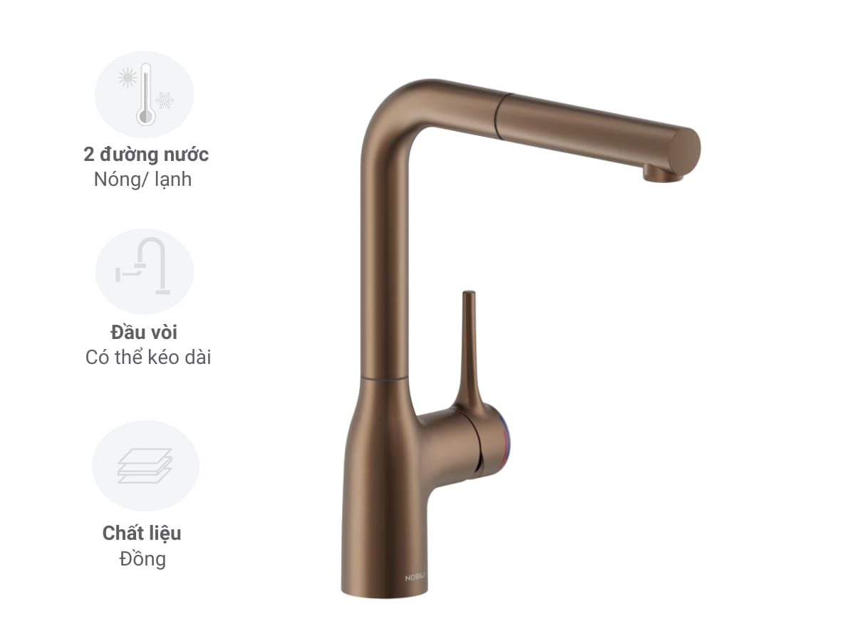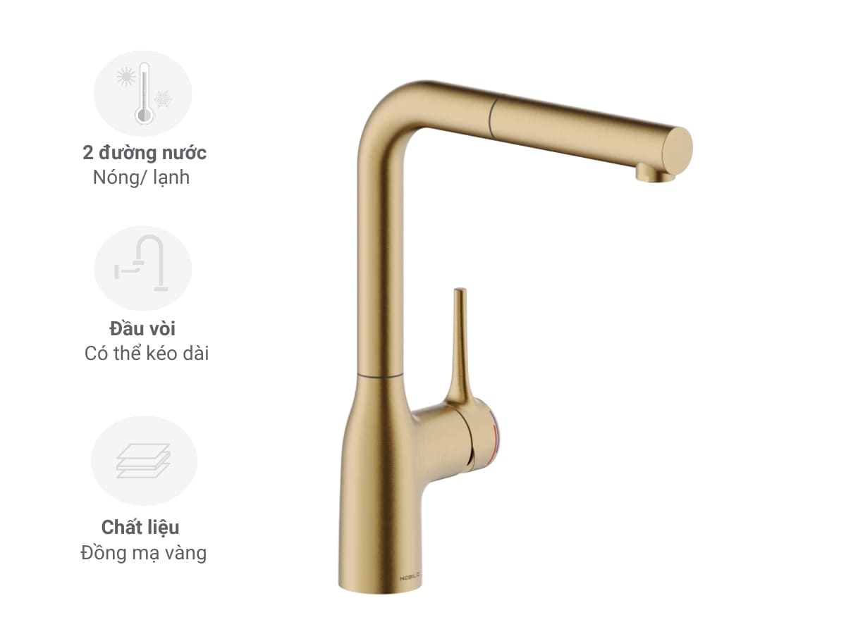 Vòi rửa Nobili Mania NB218A thiết kế vòi dây rút tiện lợi rửa đồ dùng ngay cả khi ở xa. Chất liệu vòi đồng mạ vàng sang trọng, đảm bảo thẩm mỹ và bền bỉ. Ngoài ra, thân xoay 360º còn tăng thêm linh hoạt, tiện lợi cho quá trình sử dụng.